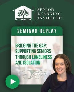 Bridging the Gap: Supporting Seniors Through Loneliness and Isolation This program will explore and provide insight into loneliness and isolation in the elderly. It will review what to look for and things to observe when talking with seniors who’ve experienced a recent loss (of a loved one, personal independence, driving, moving from a home to a senior living community, etc.). Aging can also lead to depression and isolation because of a fear of being viewed as “different”. The presentation will offer suggestions to support loved ones, friends and neighbors who are experiencing loneliness. Watch |